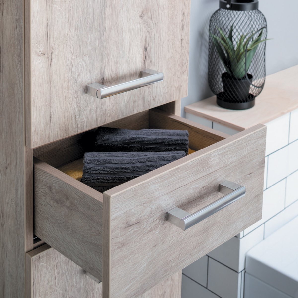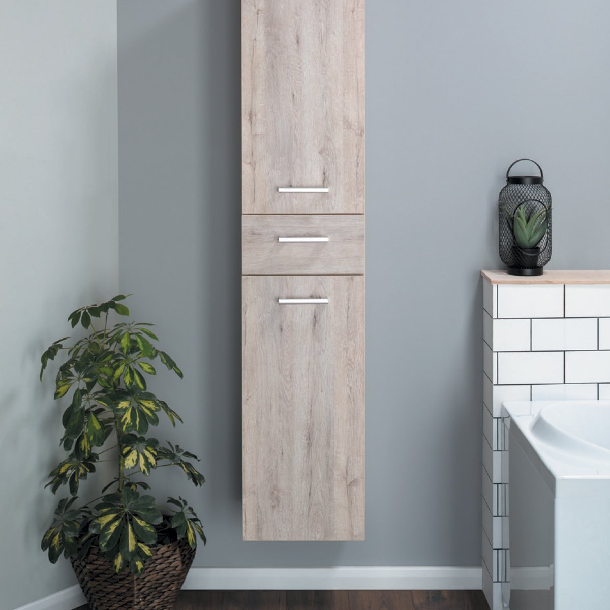 | Название: | Пенал, 35 см, подвесной/напольный, универсальный, 2 дверцы, 1 ящик, 4 стеклянные полки, дуб кантри | ||