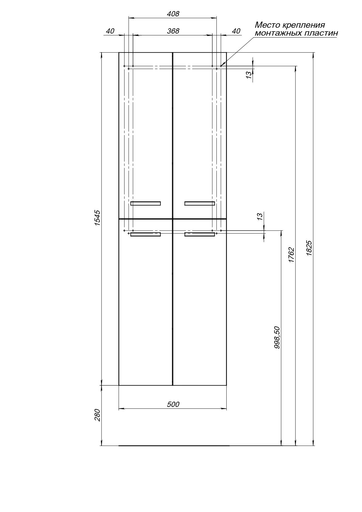 | Название: | Пенал, 50 см, подвесной/напольный, универсальный, 4 дверцы, 4 стеклянные полки, дуб кантри | ||