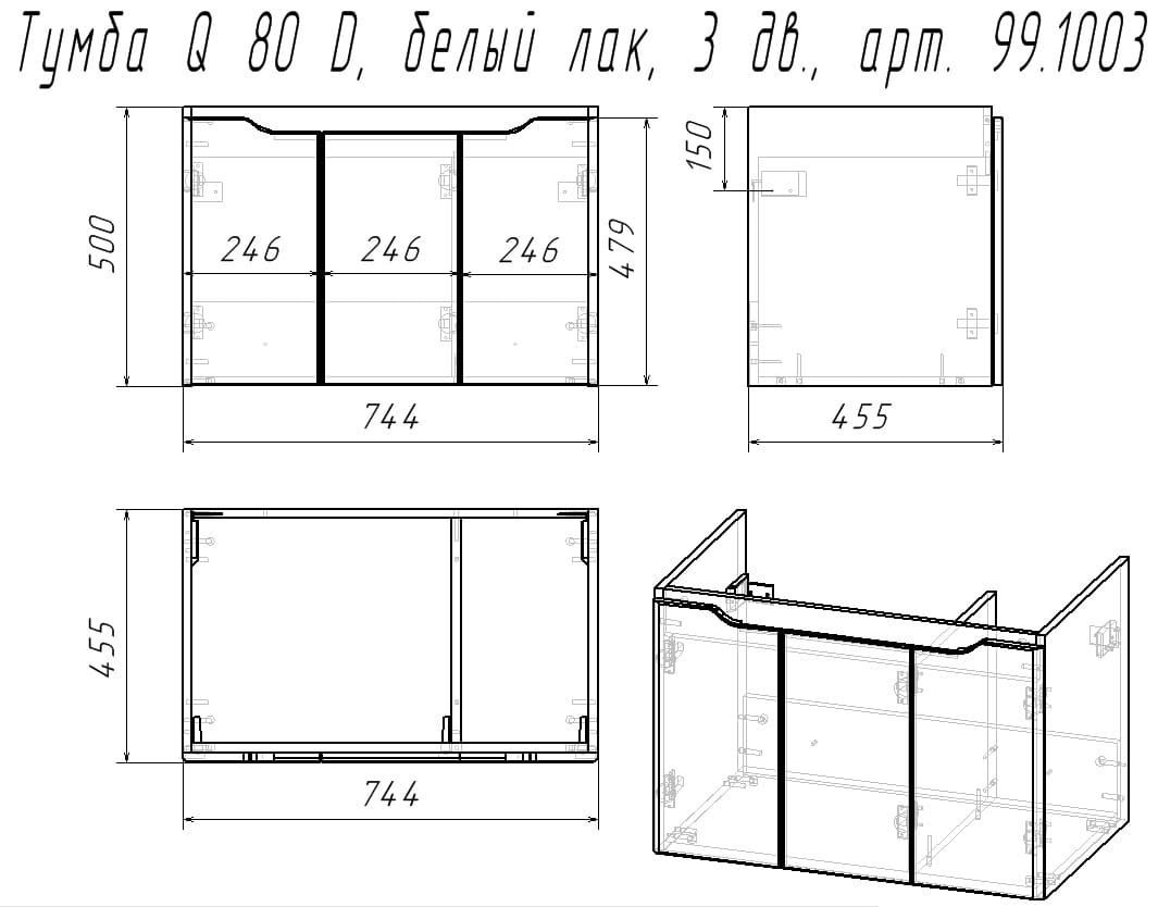 Тумба Q (D)Тумба Q (D), 80 см, подвесная, 3 дверцы, белый глянец