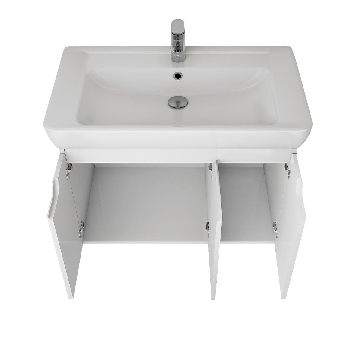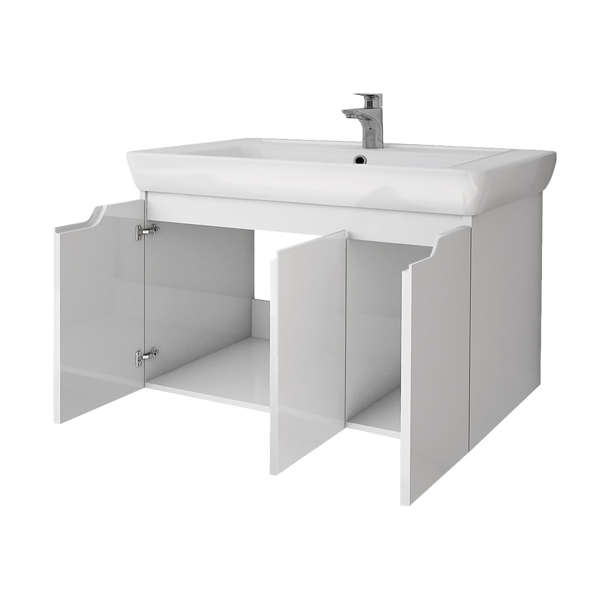 Тумба Q (D), 80 см, подвесная, 3 дверцы, белый глянец