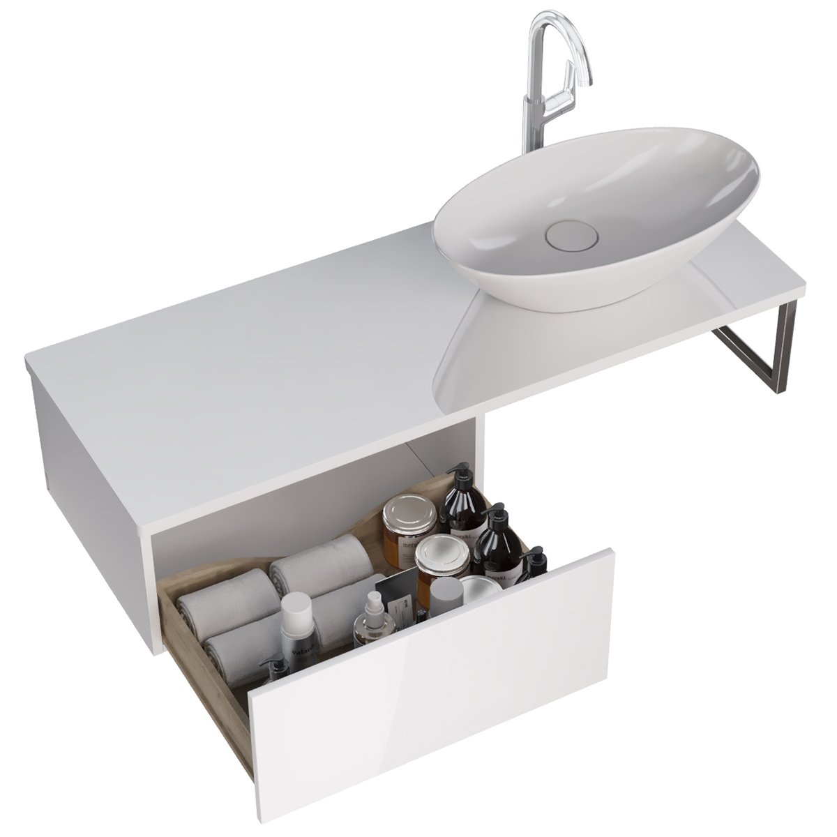 Столешница LINE, 120 см, стеклянная, с отверстиями для установки накладного умывальника и смесителя, белая