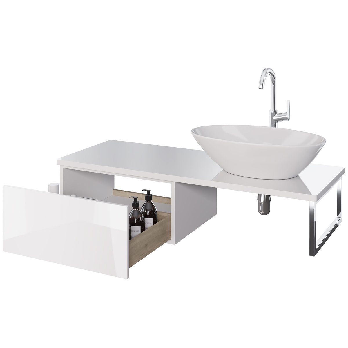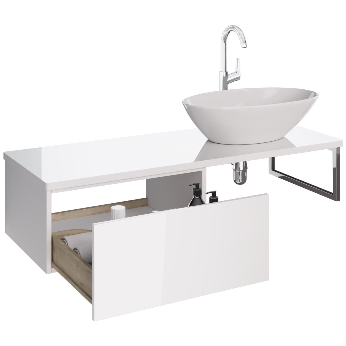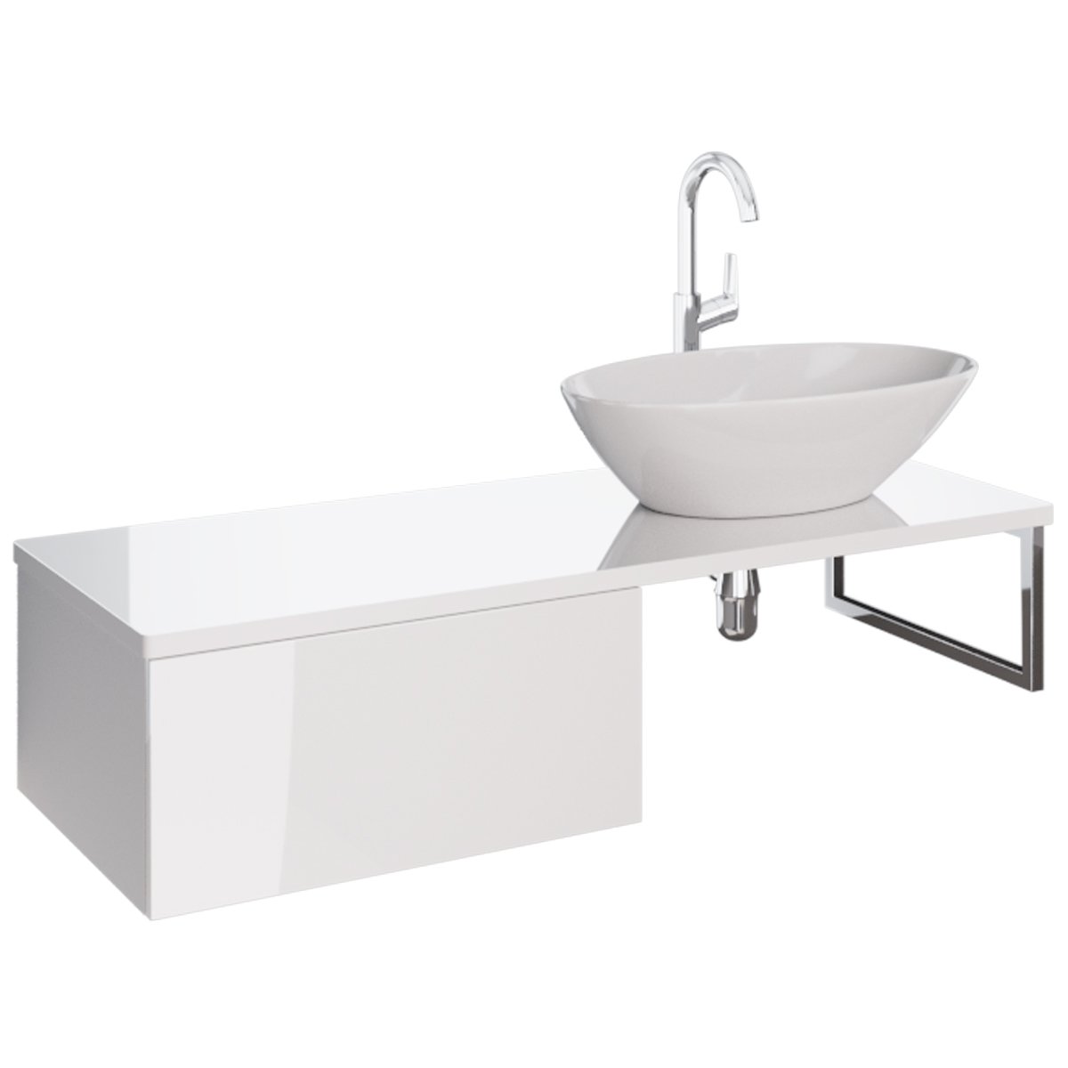 Ящик BOX, 60 см, подвесной, для стеклянной столешницы LINE, 1 ящик, push-to-open, белый глянец