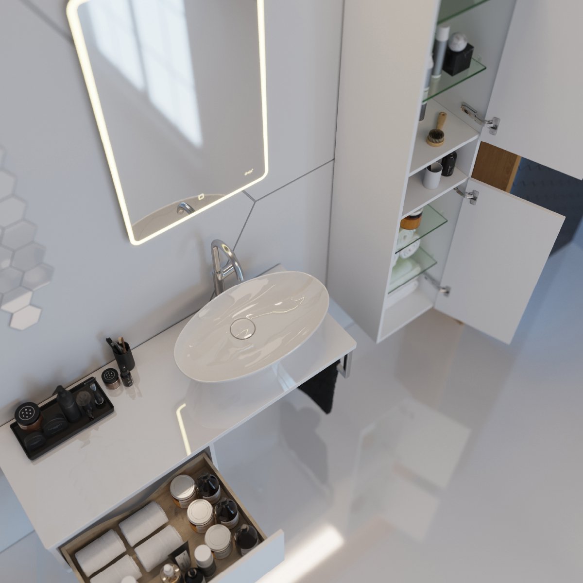 Ящик BOXЯщик BOX, 60 см, подвесной, для стеклянной столешницы LINE, 1 ящик, push-to-open, белый глянец