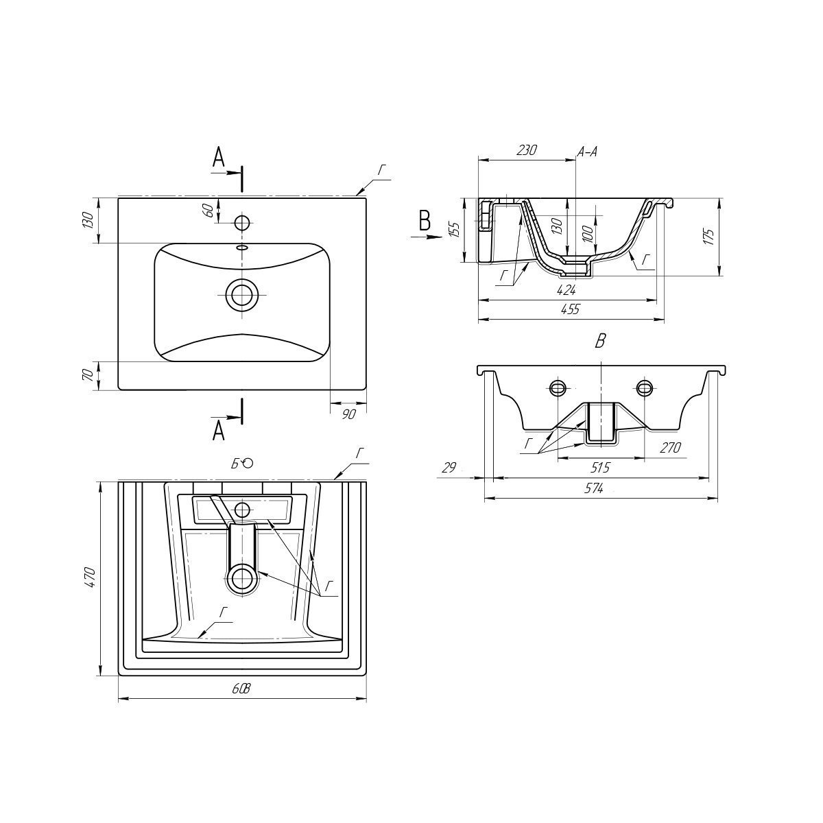Q, 60 см, мебельный умывальник, керамический