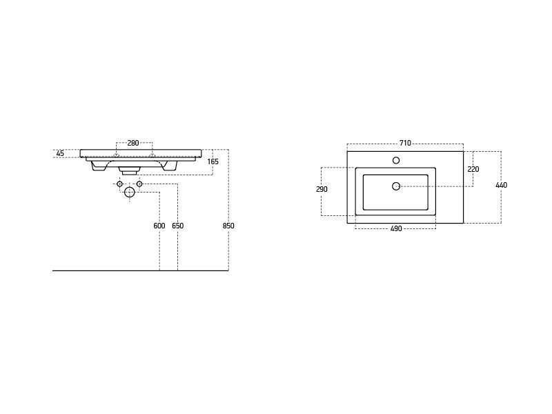 SLIM SYNERGY, 65 см, мебельный умывальник, керамический
