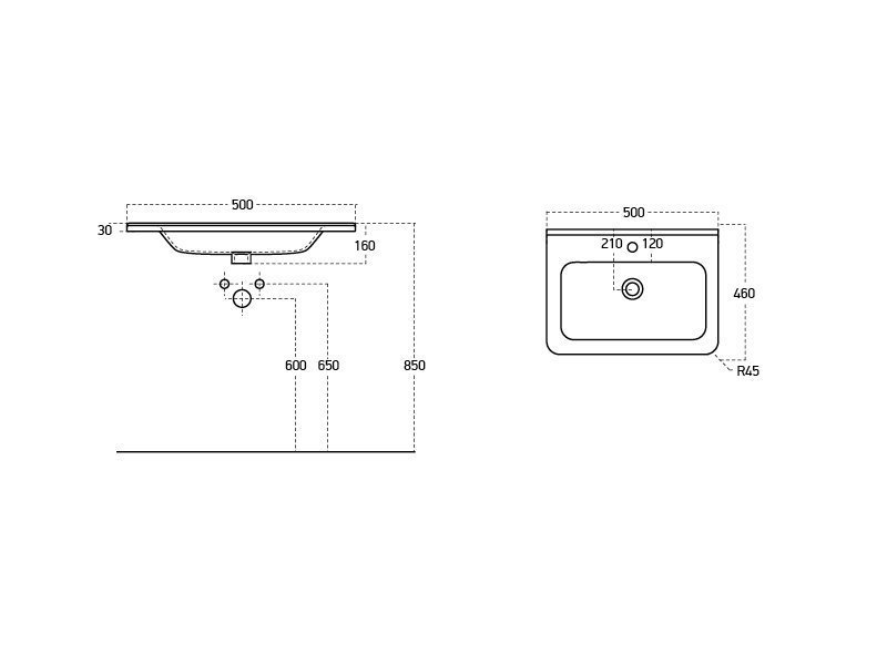 Q, 55 см, мебельный умывальник, керамический