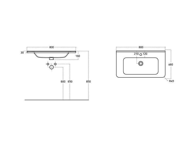 Q, 80 см, мебельный умывальник, керамический