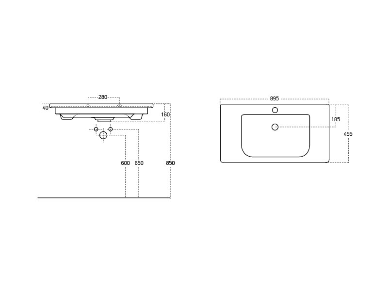 Дельта 85 см, мебельный умывальник, керамический
