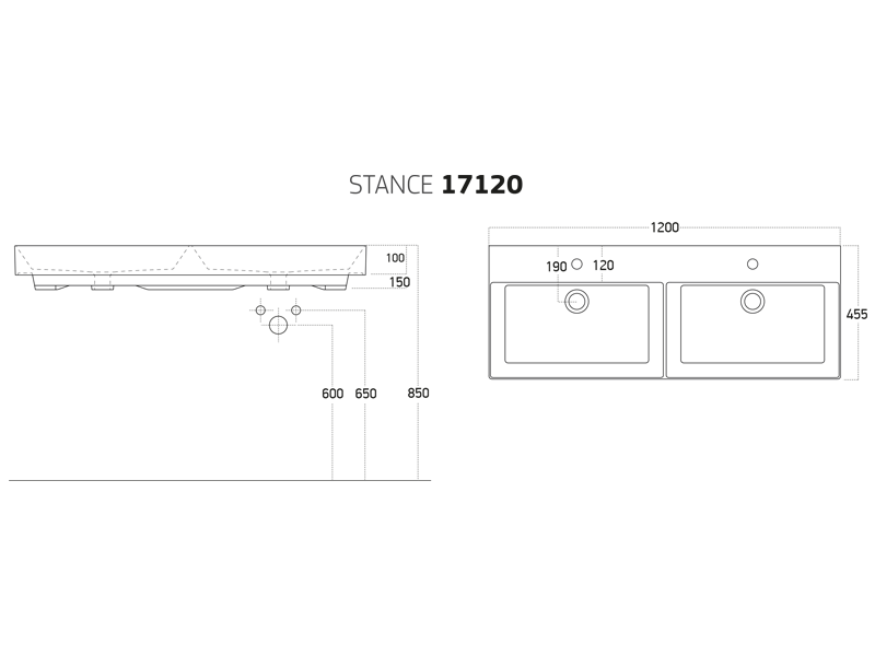 HARMONIA, 125 см, мебельный умывальник, керамический, две чаши
