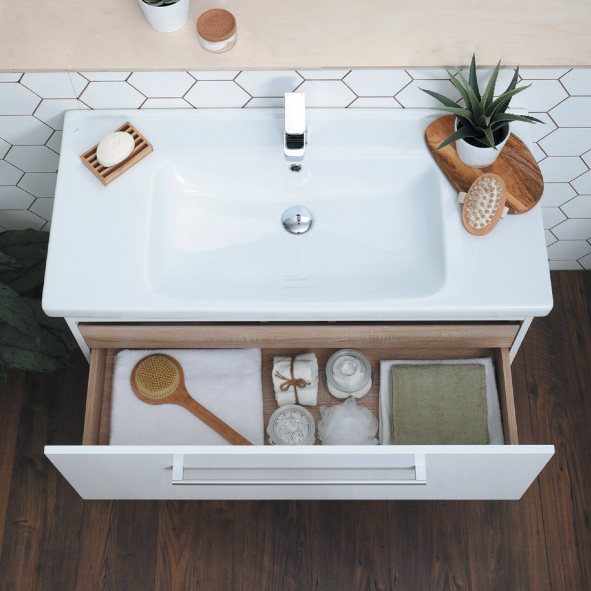 Тумба BIG INN, 80 см, подвесная, 1 ящик + выдвижной внутренний ящик, белый глянец