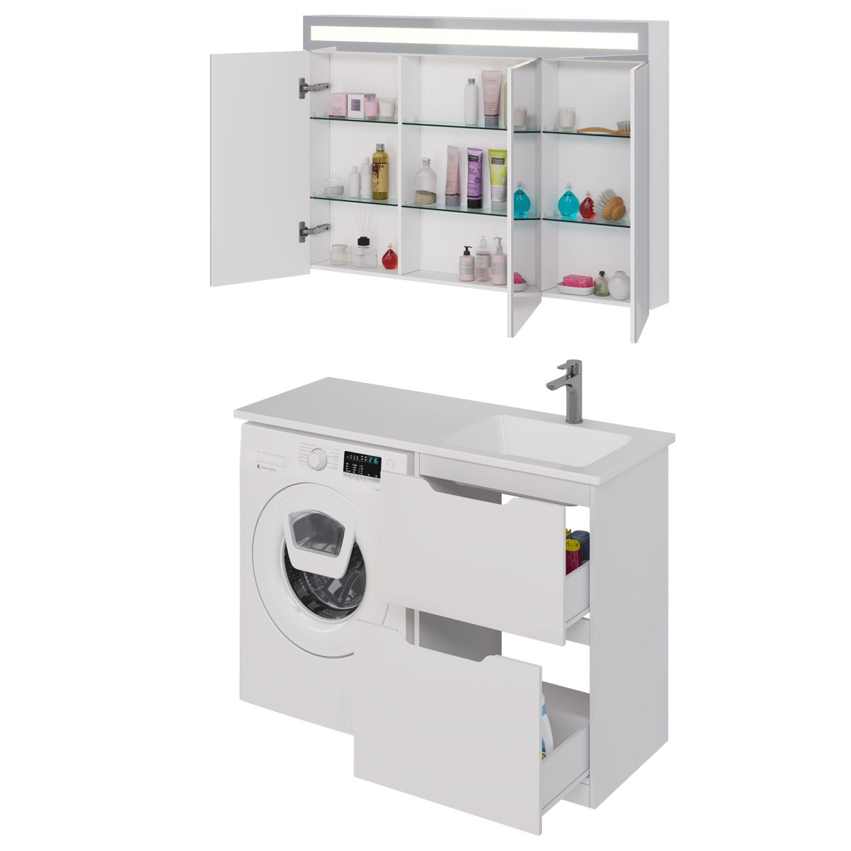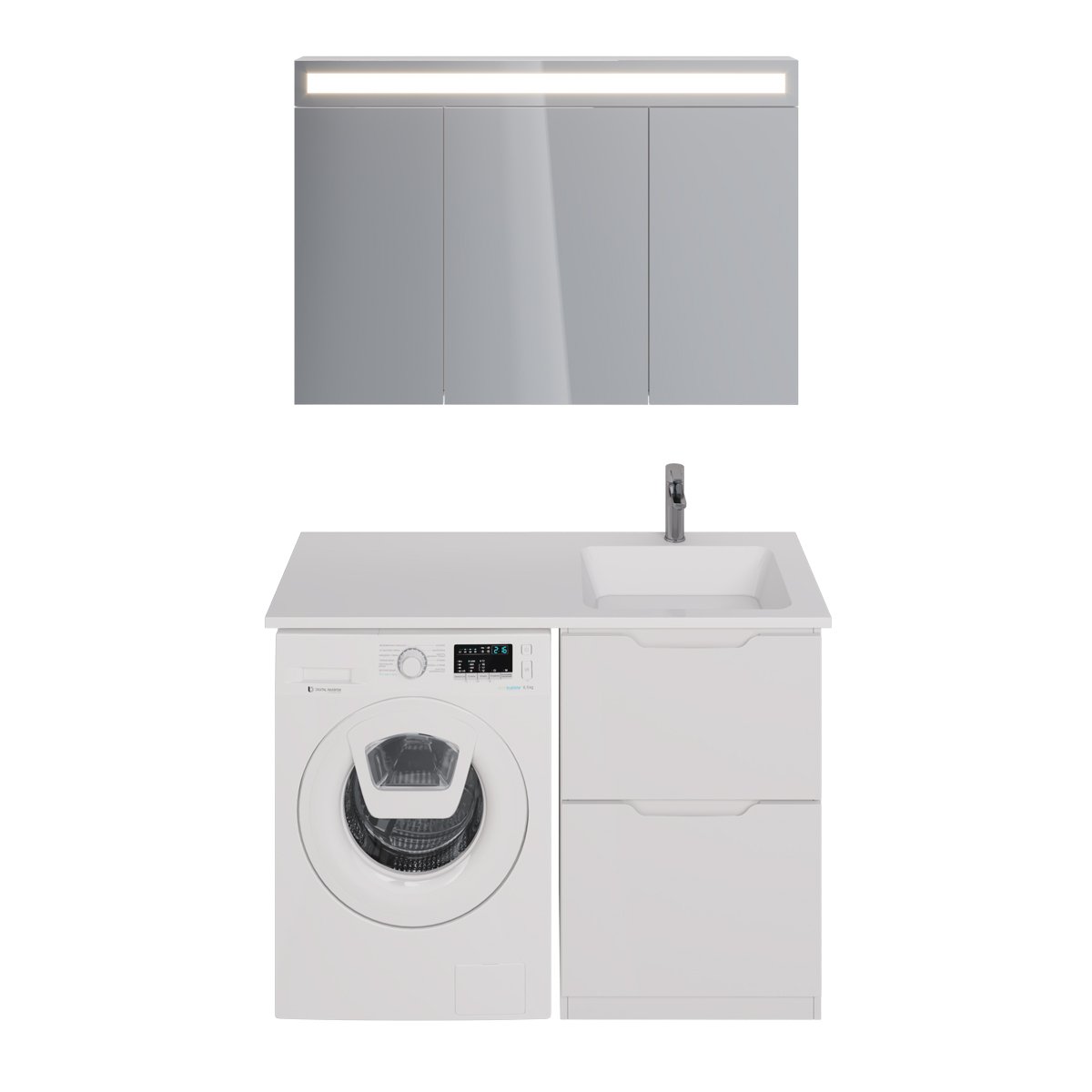 Тумбы Bona и Vega помогают организовать порядок в ванной комнате. Выбирайте модель: с ящиками – Bona, с ящиком и дверцами – Vega. В комбинации с умывальниками Wing – шириной 120 см – с правым или левым расположением крыла они позволяют удобно разместить стиральную машину. Функционально и просто.