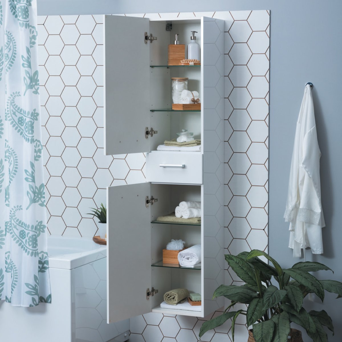 Удивительно, сколько предметов помещается в небольшой с виду пенал. В зависимости от модели, пенал для ванной комнаты может быть оснащен ящиками и полочками. Ванные комнаты, в которых нашлось место пеналу, выглядят более чистыми и нарядными, потому что освободившиеся поверхности легче регулярно мыть и протирать.