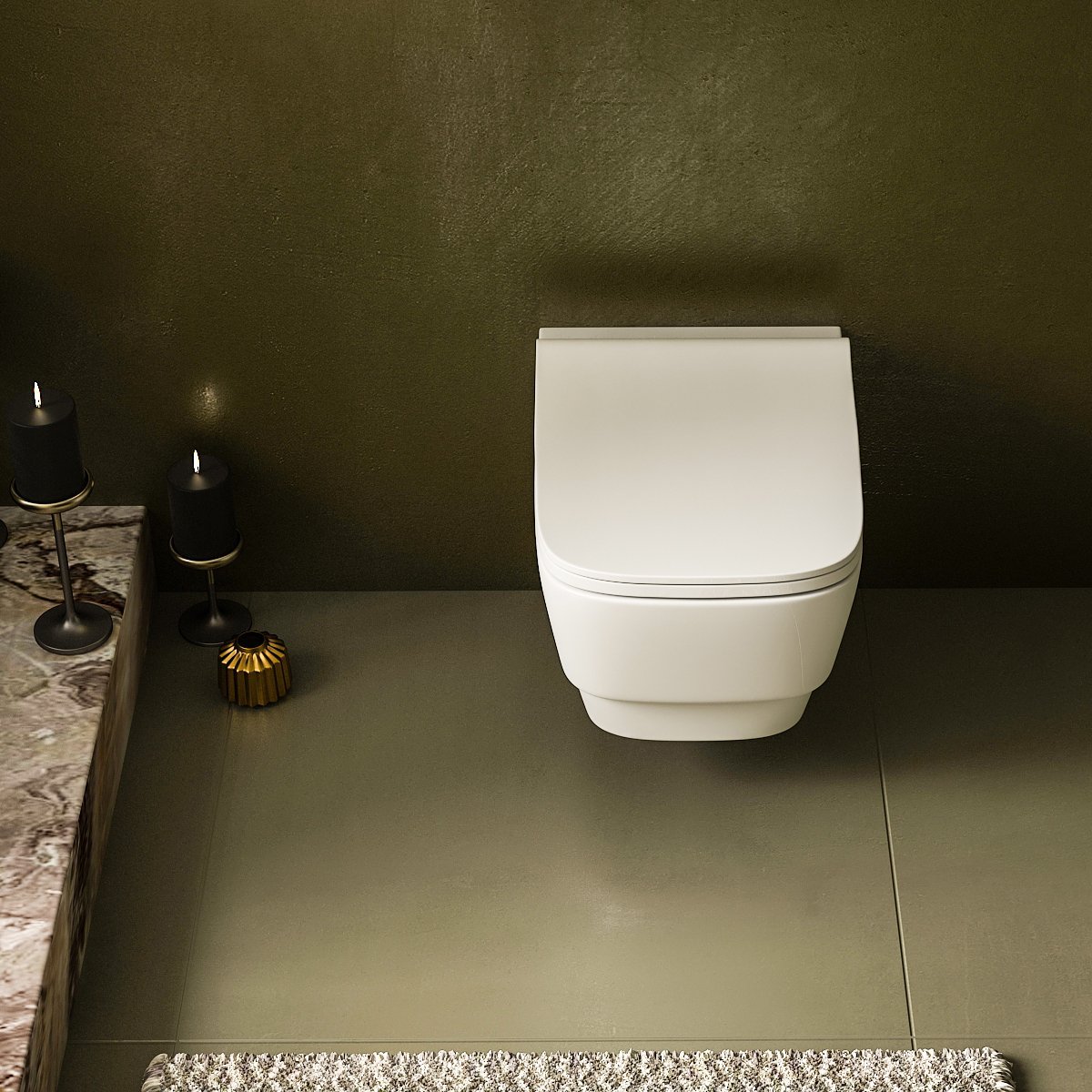 Унитаз ENZO, безободковый, подвесной, белый глянец, без сиденья