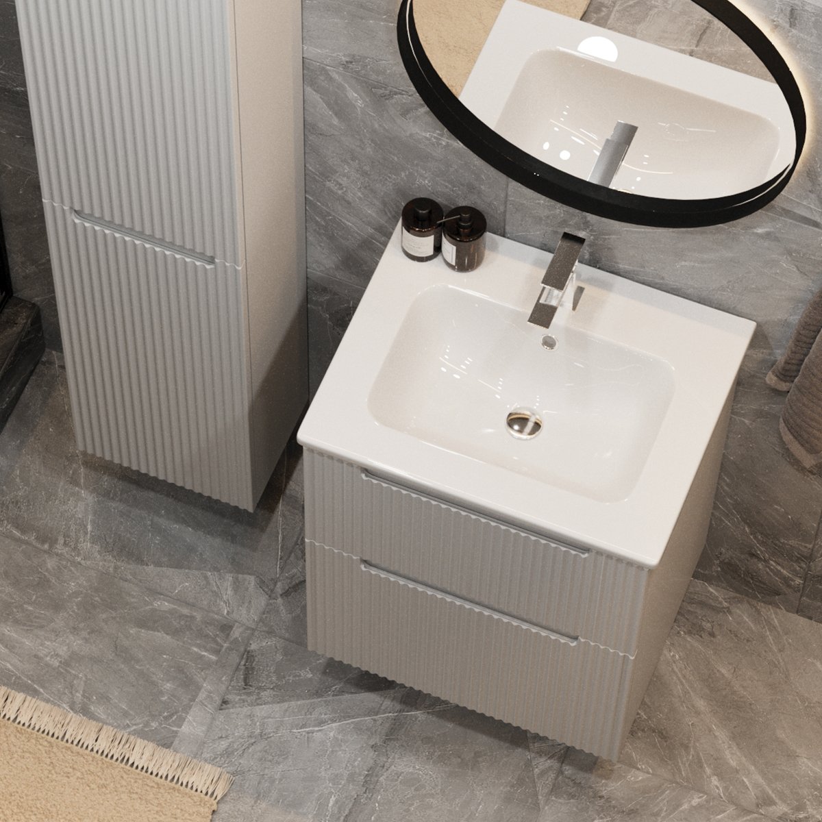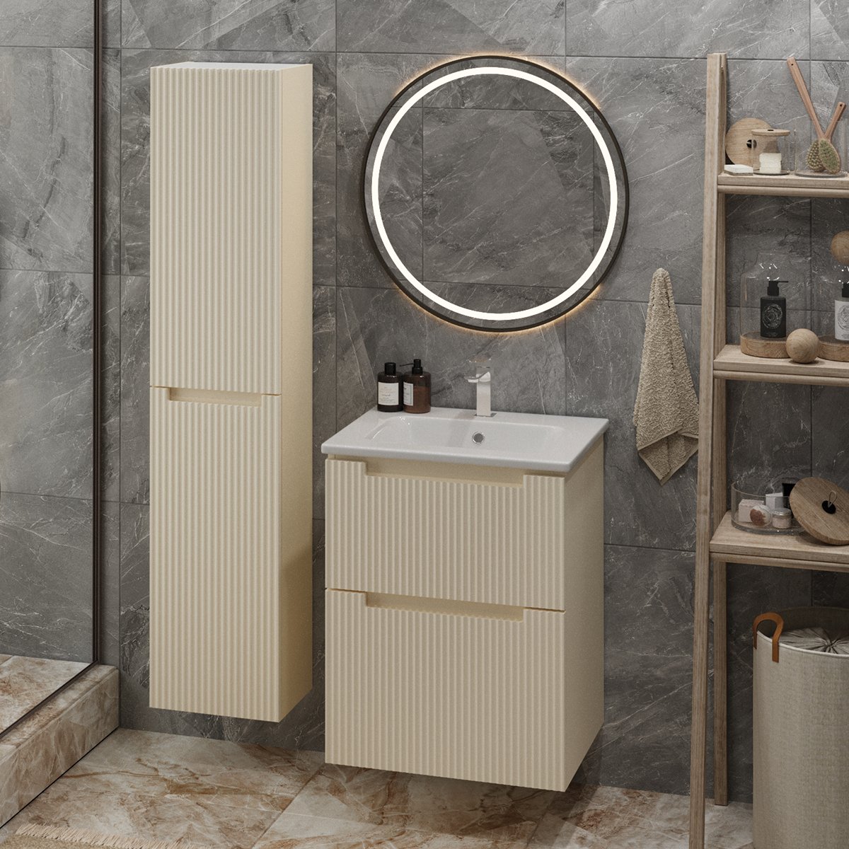 Тумба EUPHORIA, 60 см, подвесная/напольная, 2 ящика, матовый бежевый, под умывальник Euphoria