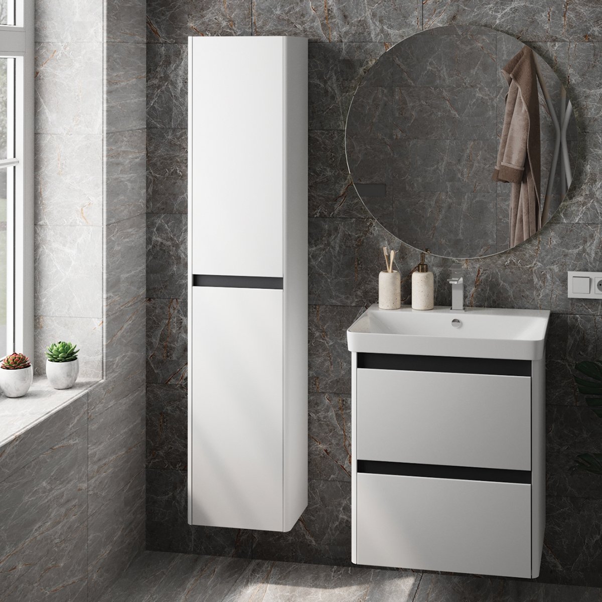 С коллекцией Luxury Plus ванная комната буквально преображается: минималистичный дизайн без выступающих деталей, эргономичные интегрированные ручки, матовые поверхности фасадов и декоративные вставки черного цвета. Древесные акценты «дуб крафт» внутри тумб. Скрытые и бесшумные доводчики. А также элегантные модели керамических умывальников с глубокими чашами. Все это – Ваш новый уровень комфортной жизни.