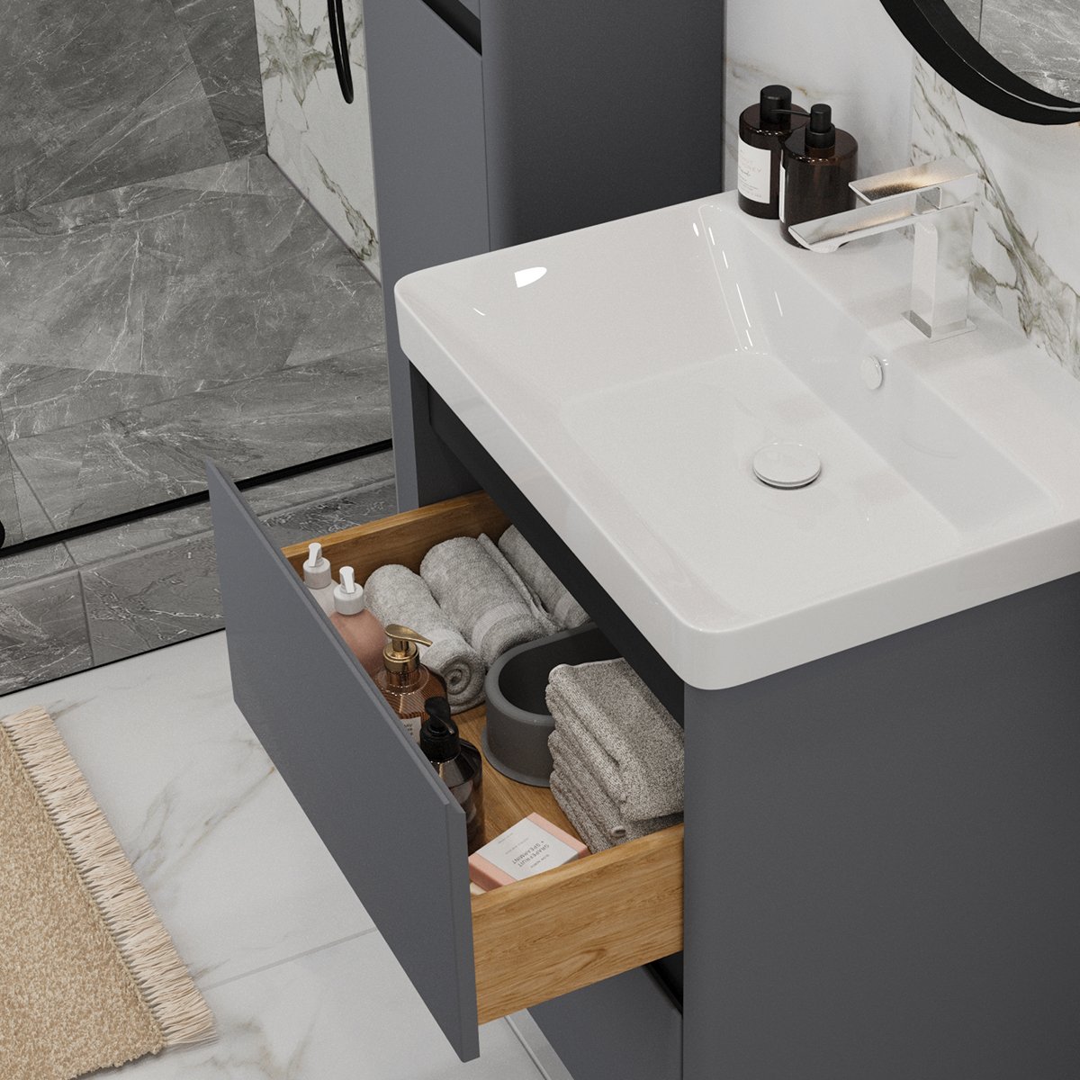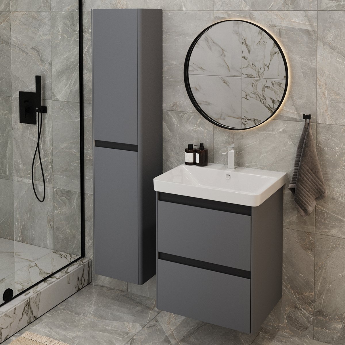 Тумба LUXURY PLUS, 60 см, подвесная/напольная, 2 ящика, с опорами, серый базальт, под умывальник Luxury