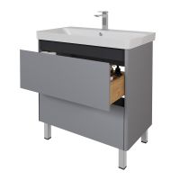 Тумба LUXURY PLUS, 80 см, подвесная/напольная, 2 ящика, с опорами, серый базальт, под умывальник Luxury