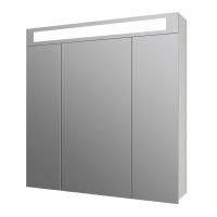 Шкаф зеркальный UNI, 80 см, 3 дверцы, 6 стеклянных полок, с подсветкой и выключателем, белый