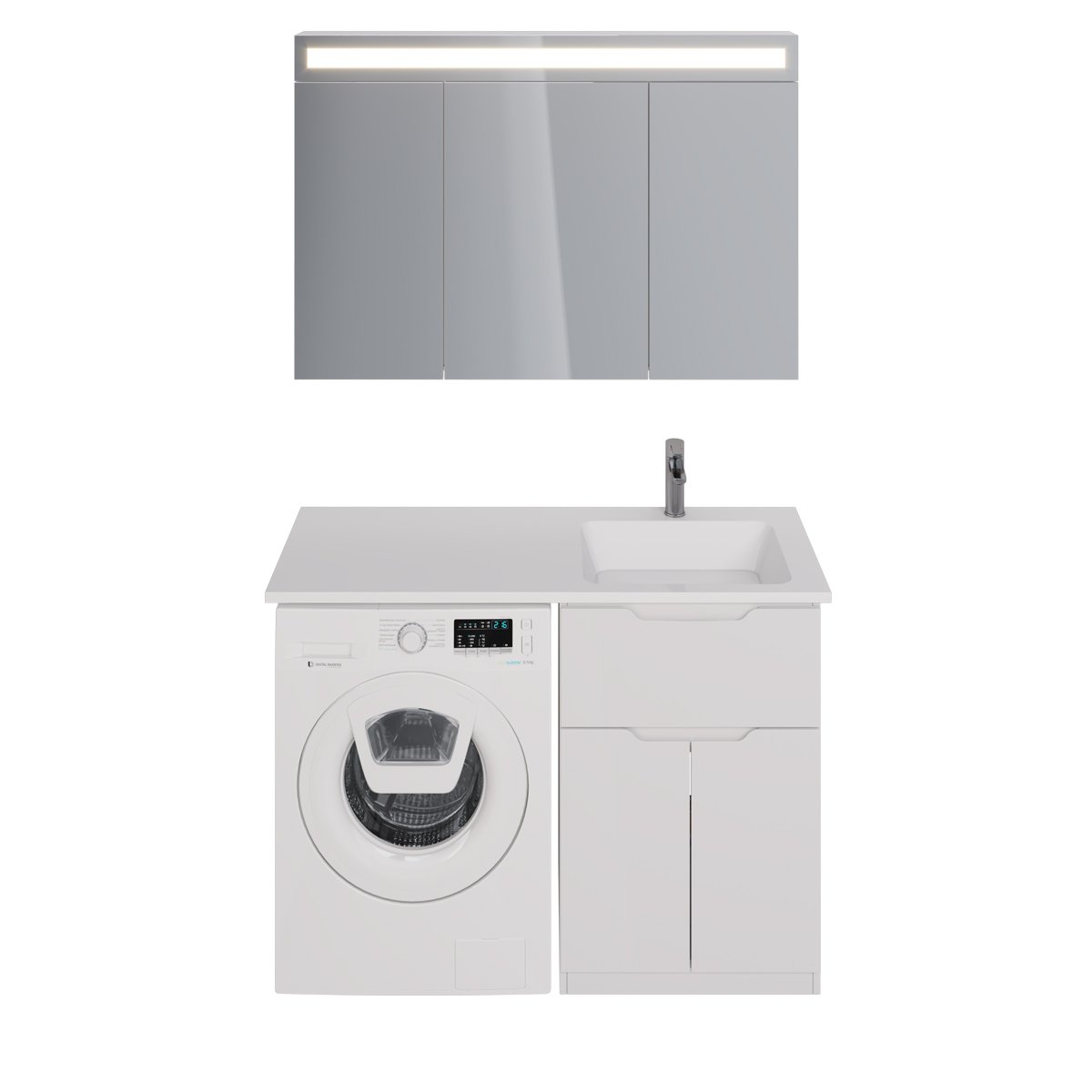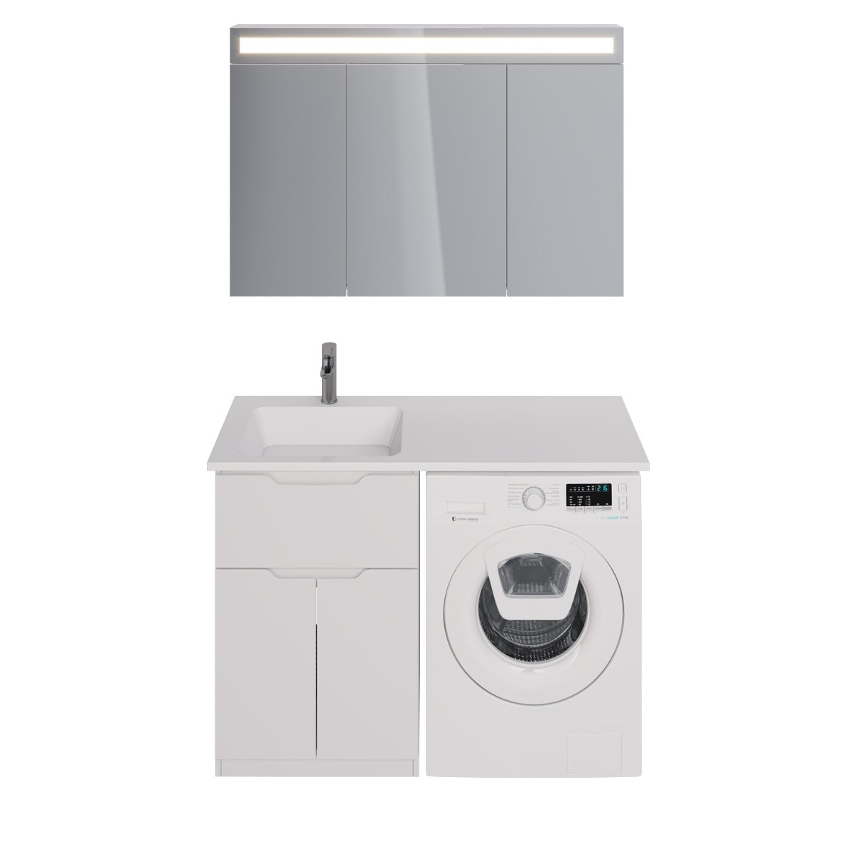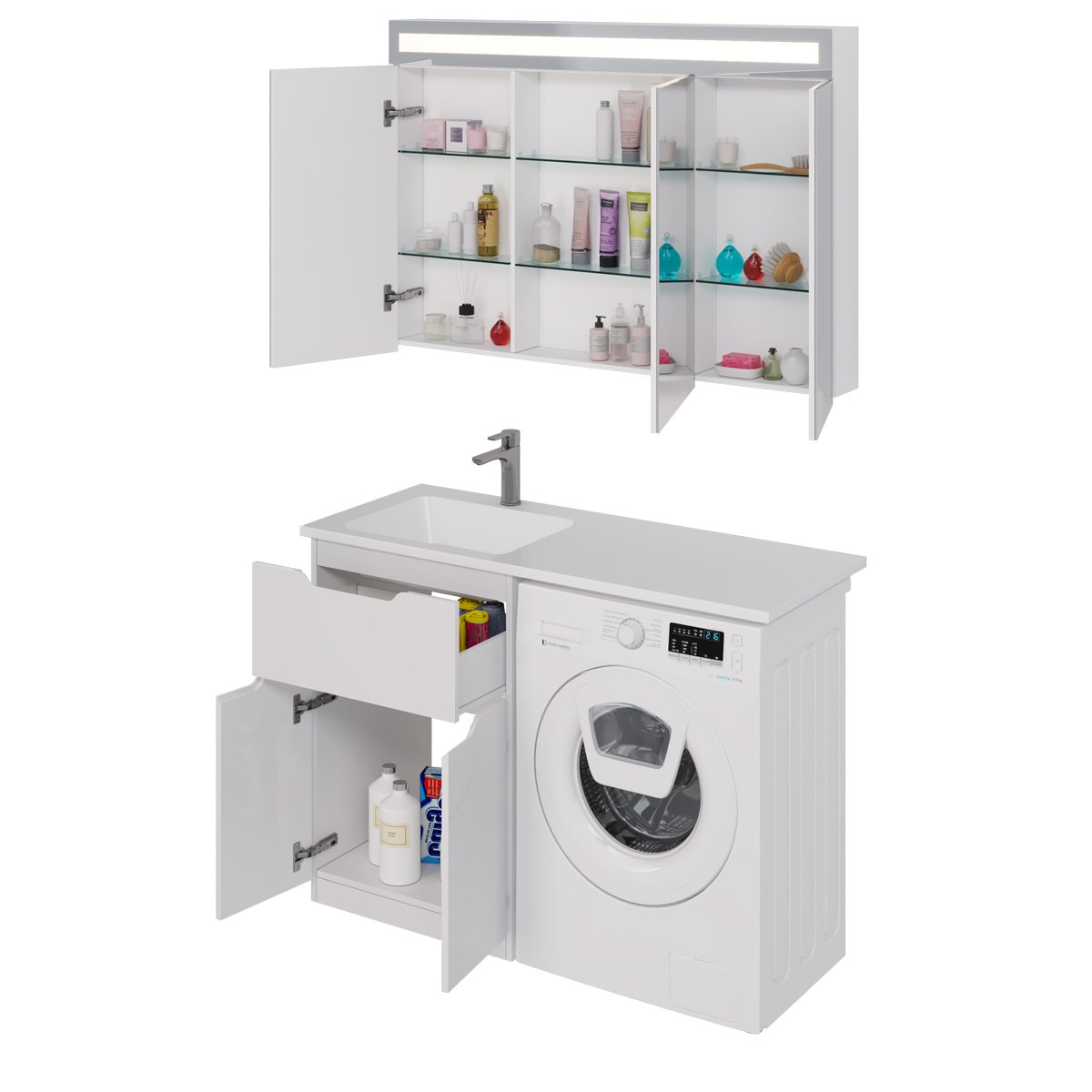 Тумбы Bona и Vega помогают организовать порядок в ванной комнате. Выбирайте модель: с ящиками – Bona, с ящиком и дверцами – Vega. В комбинации с умывальниками Wing – шириной 120 см – с правым или левым расположением крыла они позволяют удобно разместить стиральную машину. Функционально и просто.
